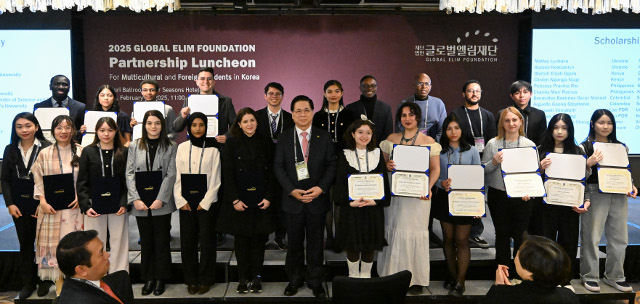 글로벌엘림재단(이사장 이영훈 목사)이 국내에서 공부하는 외국인 유학생에게 장학금을 전달하며 실질적 지원과 격려를 전했다. 지난달 28일 서울 종로구 포시즌스호텔에서 열린 ‘2025 주한대사 및 다문화 유학생 오찬회’에서다. 미얀마 필리핀 엘살바도르 알제리 우크라이나 등 15개국에서 온 유학생 25명이 출신 국가 대사관 추천으로 선정돼 장학금을 받았다.